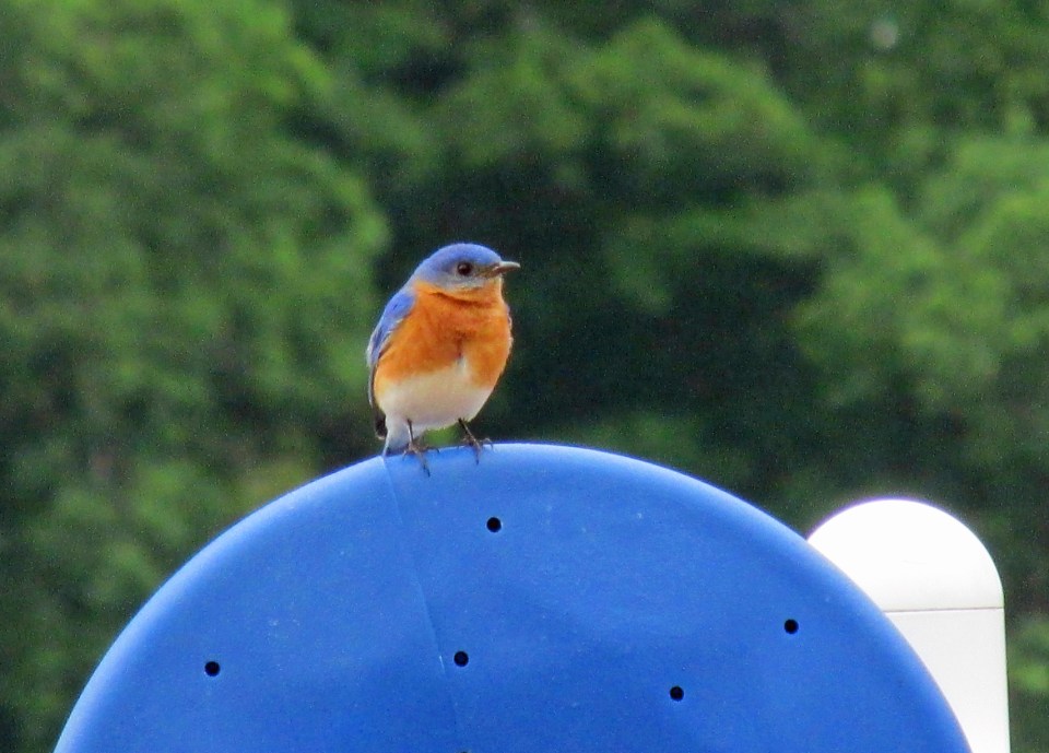 Bluebiord-Male-Playground ← Previous Next → Photo by Bryan Stevens A male Eastern Bluebird perched on playground equipment at Winged Deer Park in Johnson City.