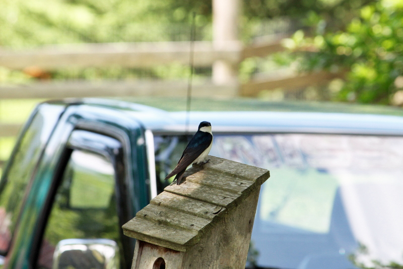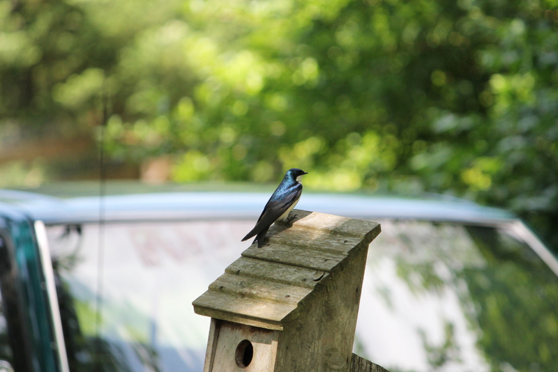 Photo courtesy of Mary Taylor Beierle A male Tree Swallow surveys his territory from atop a nesting box.