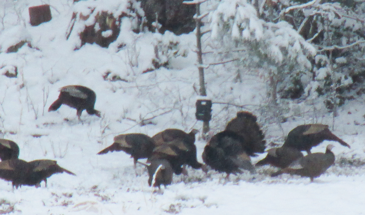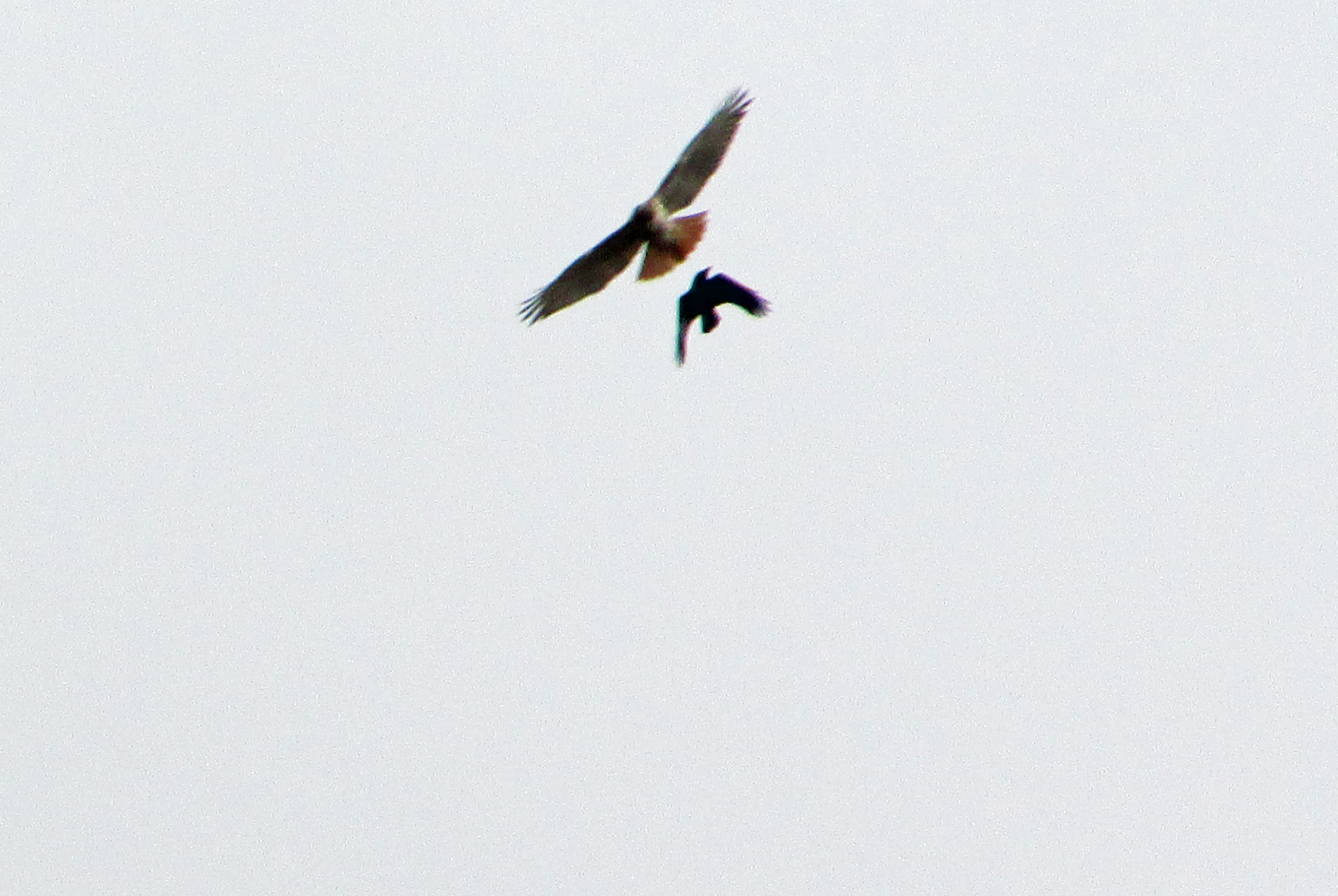 A flock of American Crows provided some drama on Sunday, Nov. 23. The crows, perhaps with good reason, didn’t appreciate finding a Red-tailed Hawk in their airspace. The flock spent around 20 minutes directing an aerial bombardment against the hawk, which finally got the hint and moved out of the territory claimed by the crows.
