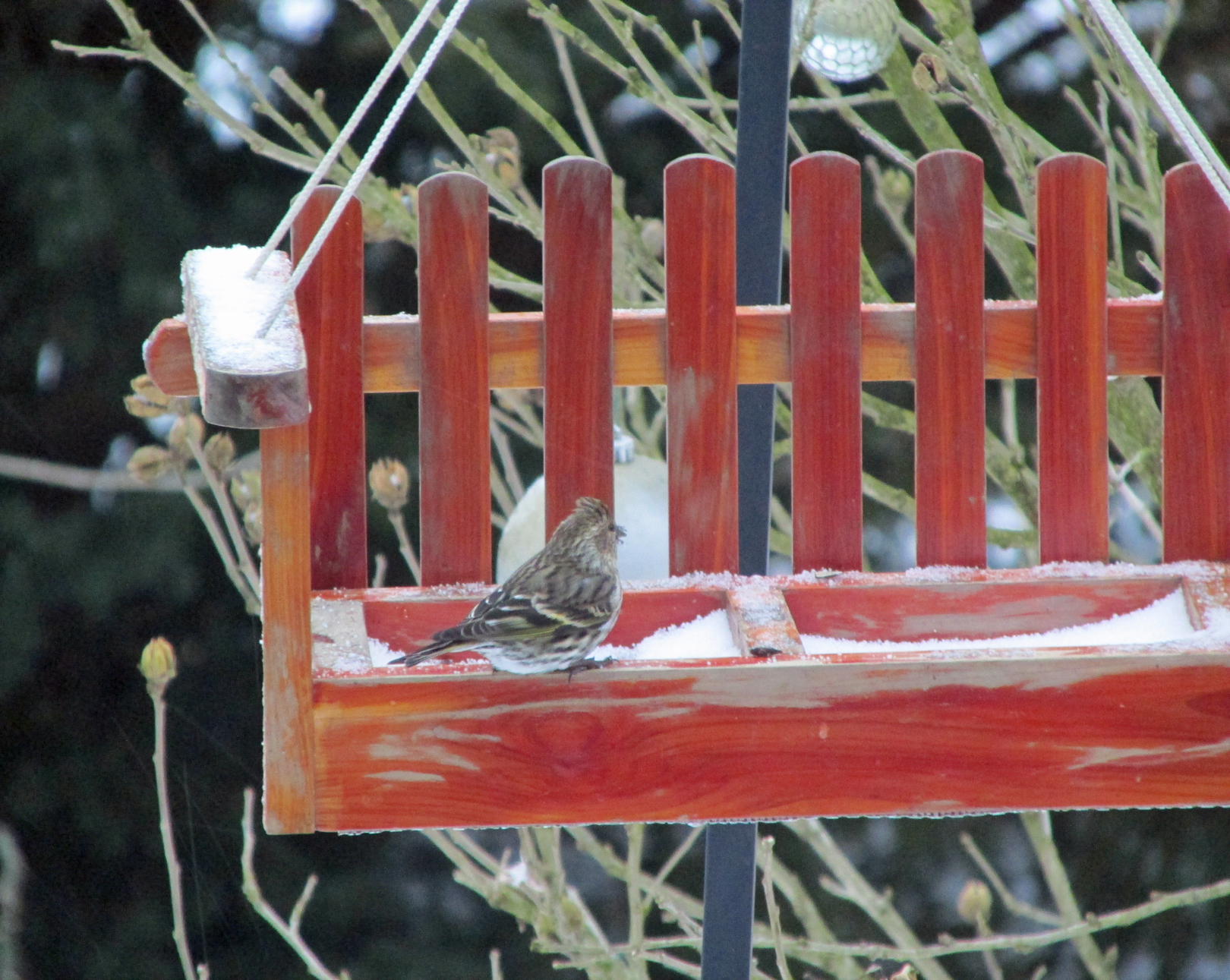 Some people quickly discover that a large flock of pine siskins is quite a drain on the daily allotment of feed provided for backyard birds. For such small birds, they have large appetites. Siskins are also extremely tame and can often be approached quite closely. A few years ago during a particularly frigid cold snap, I succeeded in luring a pine siskin to land on my gloved hand, which held some sunflower seeds. Needless to say, it was a very memorable, intimate moment.