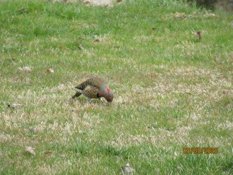 If you search for flickers, however, don’t concentrate all your scanning on tree trunks. These woodpeckers spend a lot of time in field or on lawns in search of insect prey, which mostly consists of ants and beetles. Barbara’s observation gave her a glimpse into the usual behavior of these unusual woodpeckers. Flickers also eat seeds and fruit, and these woodpeckers will also visit feeders for peanuts, sunflower seed and suet.