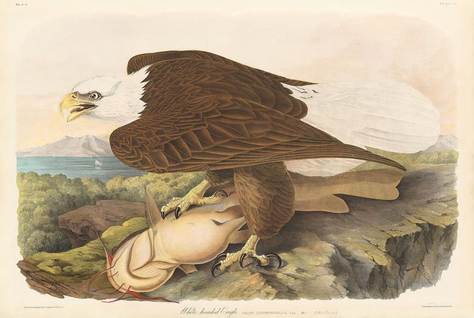 Early American naturalist and artist John James Audubon painted an accurate depiction of a bald eagle scavenging a catfish.