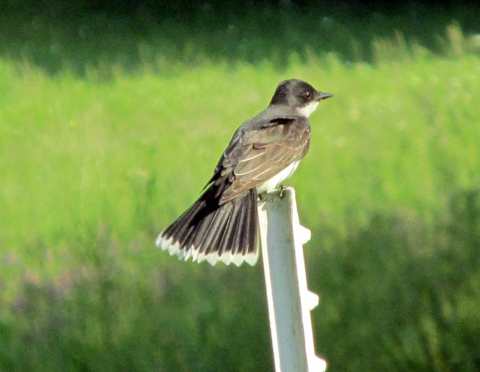 The Eastern kingbird doesn’t have a melodic song, but it does have a call that sound like an electric zap. So, like the Eastern phoebe’s strident “fee-bee” notes and the great crested flycatcher’s loud “weep” calls, the kingbird is not among the more melodic songbirds. Regardless, we owe all flycatchers a debt. Because of their fondness for insects, they do us a great service helping to keeping down the numbers of some of the more pesky bugs.