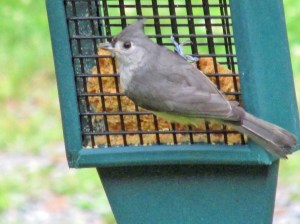 Like chickadees, titmice are fond of sunflower seeds. No other offering will so readily lure them to feeders, although they do develop a fondness for suet cakes. I’ve also had success attracting titmice to my feeders by offering unsalted, shelled peanuts. I sometimes break up the peanuts into smaller, more manageable pieces for the benefit of the titmice. These foods and a few trees or saplings around your home is all you really need to welcome titmice.