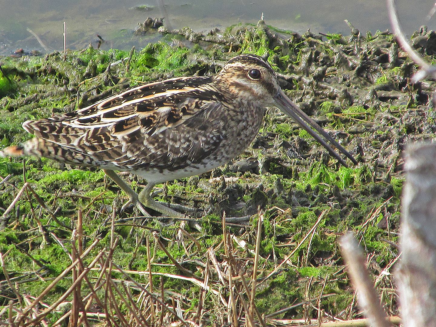 The Wilson’s snipe uses its long bill to probe in the mud for prey, which can include earthworms, insects and other invertebrates.