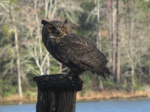 Wild turkey, 26; pied-billed grebe, 10; rock pigeon 106; Eurasian collared-dove, 2; mourning dove, 108; killdeer, 1; Wilson’s snipe, 1; ring-billed gull, 9; double-crested cormorant, 1; great blue heron, 9; black vulture, 18; and turkey vulture, 21.Cooper’s hawk, 5; bald eagle, 6; red-shouldered hawk, 2; red-tailed hawk, 15; Easter screech-owl, 6; great horned owl, 1; and barred owl, 2.