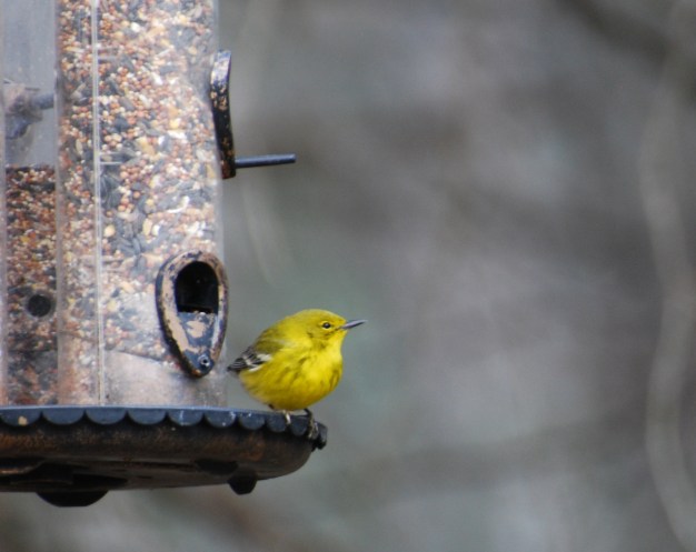 Photo by Jean Potter • A pine warbler visits a seed feeder at the home of Brookie and Jean Potter near Wilbur Lake in Elizabethton, Tennessee.